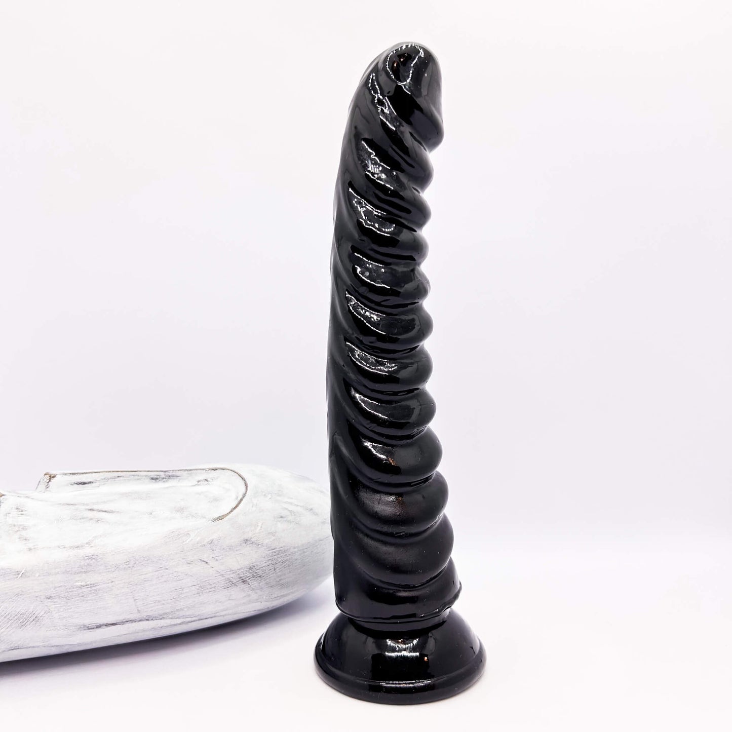 But wait, there's more! The Master Long Ribbed Dildo is equipped with a sturdy suction cup, ensuring it stays put on any hard, flat surface for a wild hands-free ride. And, did we mention it's harness compatible? Oh, yeah, this versatile dong has a flared base, ready to be used in conjunction with a harness for those nights when you fancy shaking things up. So, what are you waiting for? Bring home this gem and dive headfirst into the world of delightful exploration!
