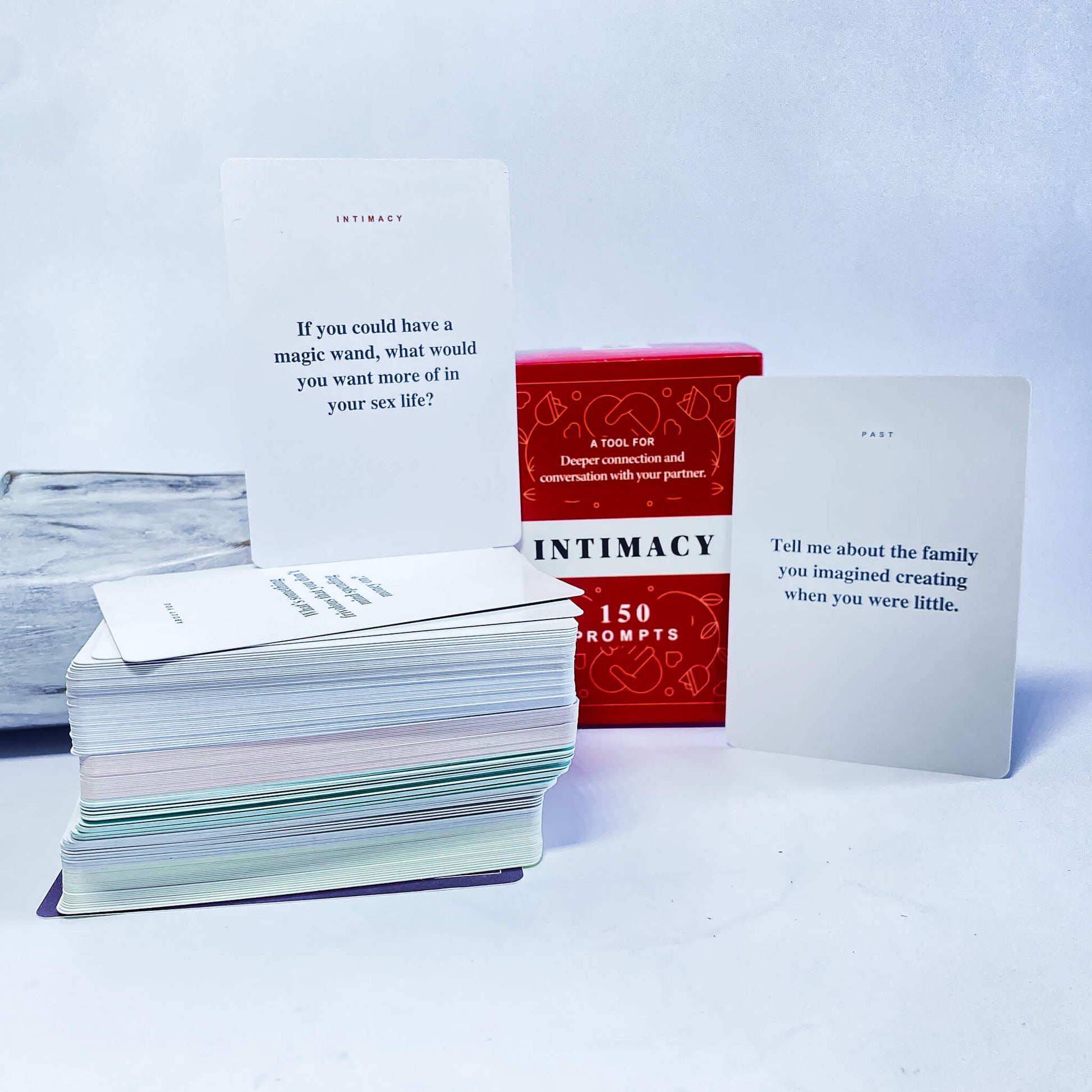 The Intimacy Deck is an internationally acclaimed adult card game for couples looking to enhance their connection and deepen their intimacy both physically and emotionally. Each card in the deck features a unique and playful activity or conversation starter that will encourage couples to open up and explore new aspects of their relationship. Whether you're in a new relationship or have been together for years, The Intimacy Deck will encourage you to speak your truth share your past and plan your future..